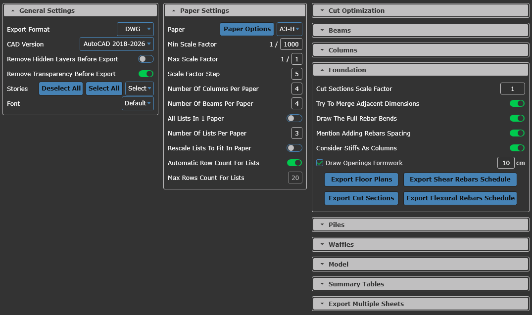 By importing models exported from CSI SAFE, the software performs the foundation design process intelligently and finally generates precise execution drawings in AutoCAD format.