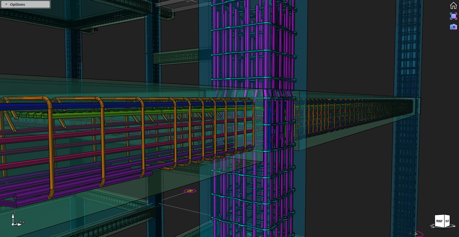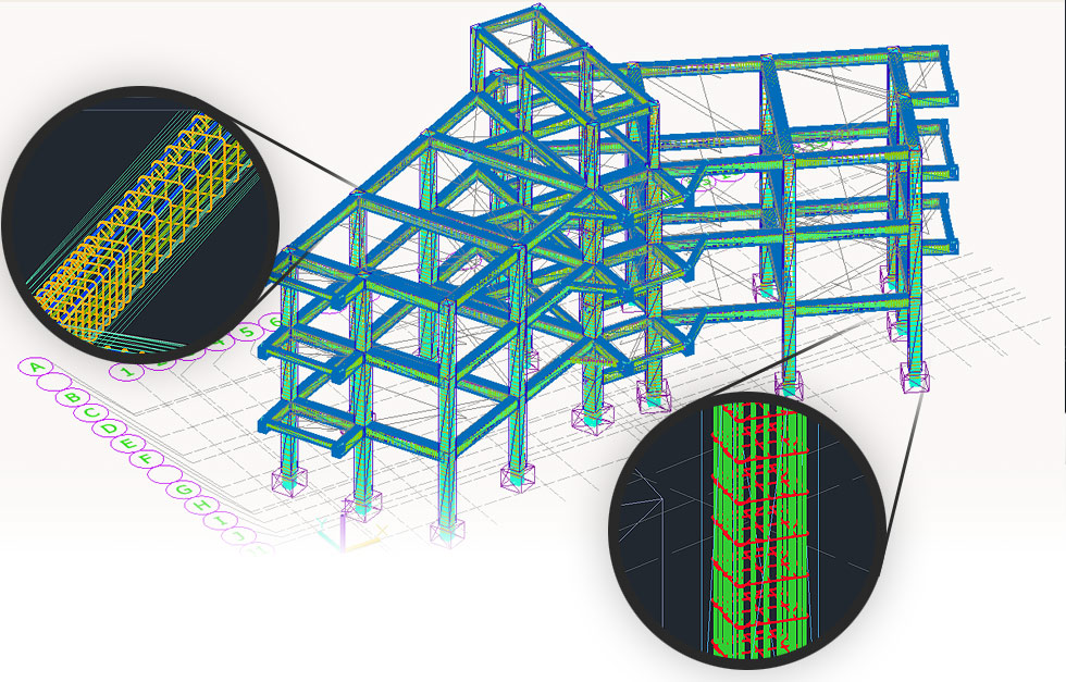 Model-based structural drafting and verification in a 3D environment, fully compliant with relevant design codes and construction standards.