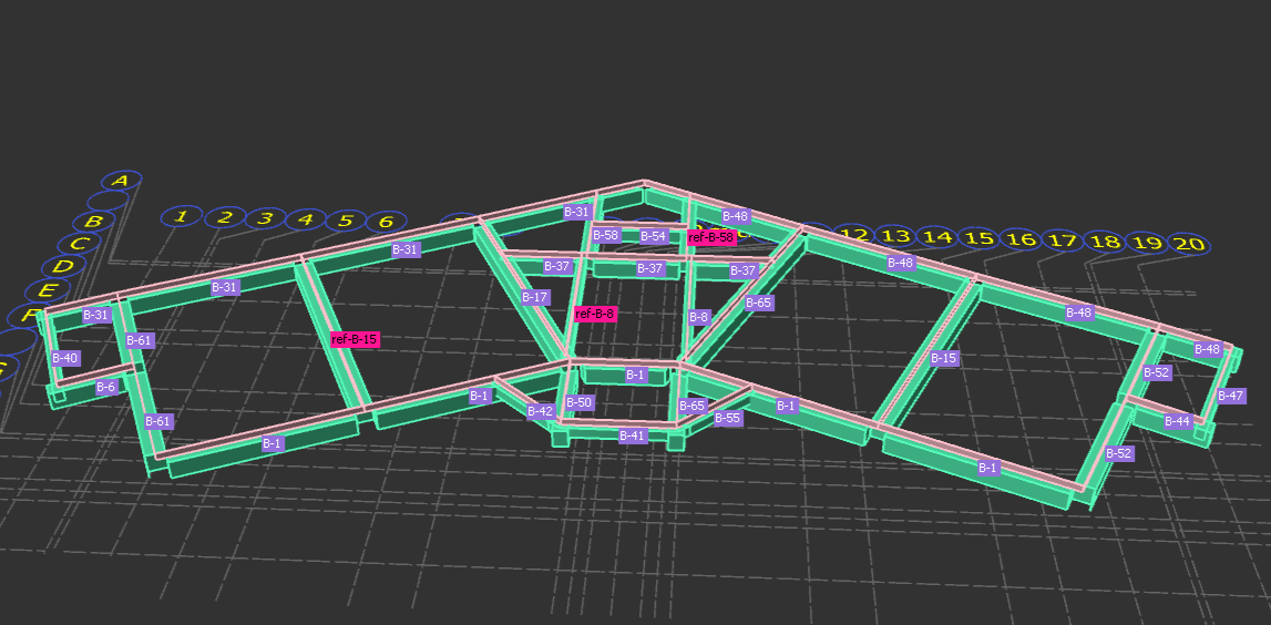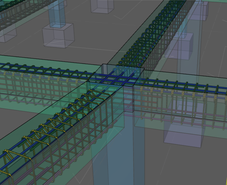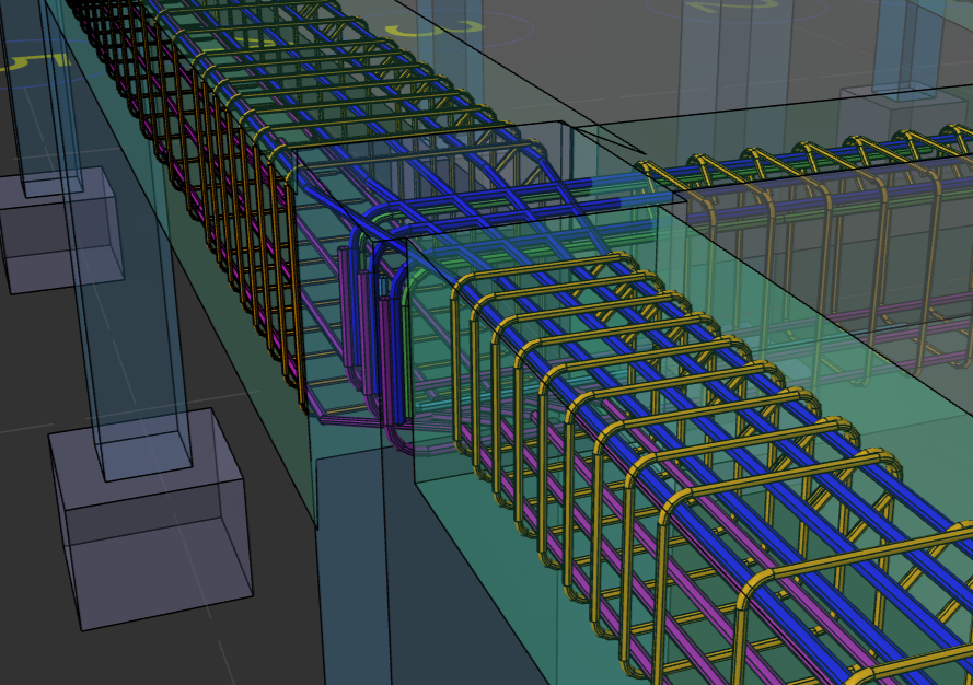 Ability to merge reinforcement bars in beams with varying widths and depths.