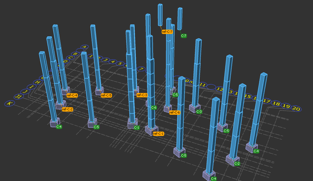 Automatic detection and design of inclined columns based on execution standards and code requirements.